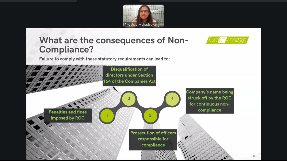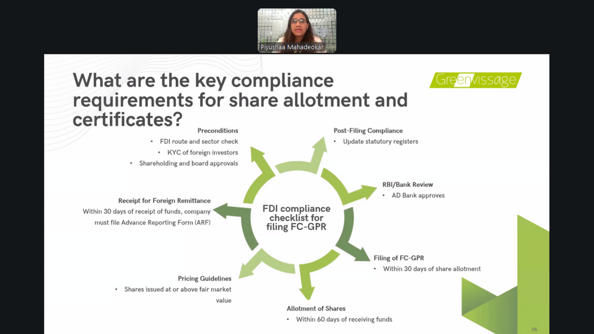 The knowledge session was led by Ms. Piyushaa Mahadeokar, Head – Compliance and Regulatory, Greenvissage Business Consulting LLP. Drawing on her extensive experience in corporate compliance and regulatory advisory, she shared practical insights into commonly observed compliance gaps and their legal, financial, and operational implications for foreign-owned entities.