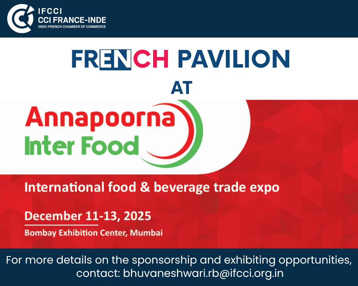 The Indo-French Chamber of Commerce & Industry (IFCCI) is proud to partner with the Federation of Indian Chambers of Commerce & Industry (FICCI) to organise the French Pavilion at one of FICCI’s flagship trade fairs—ANNAPOORNA INTERFOOD 2025, an international food and beverage trade expo at Bombay Exhibition Center, Mumbai, India.