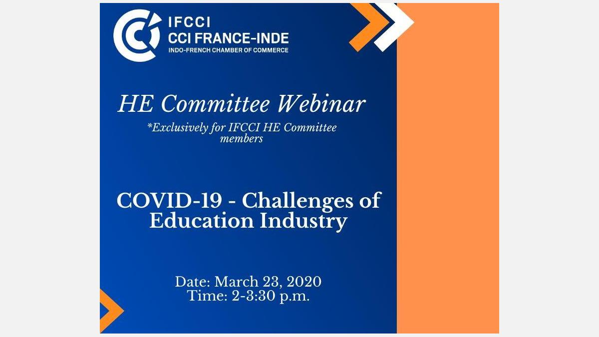The Indo-French Chamber of Commerce and Industry (IFCCI) under the aegis of the IFCCI HE Committee organised a webinar for the members to understand the challenges faced by the Education Industry in times of covid19. The French and Indian schools shared their issues related to admissions, cancellation/postponement of exams, drop in summer internship opportunities, student mobility which have been impacted adversely.