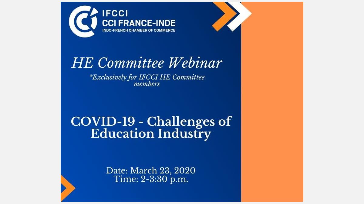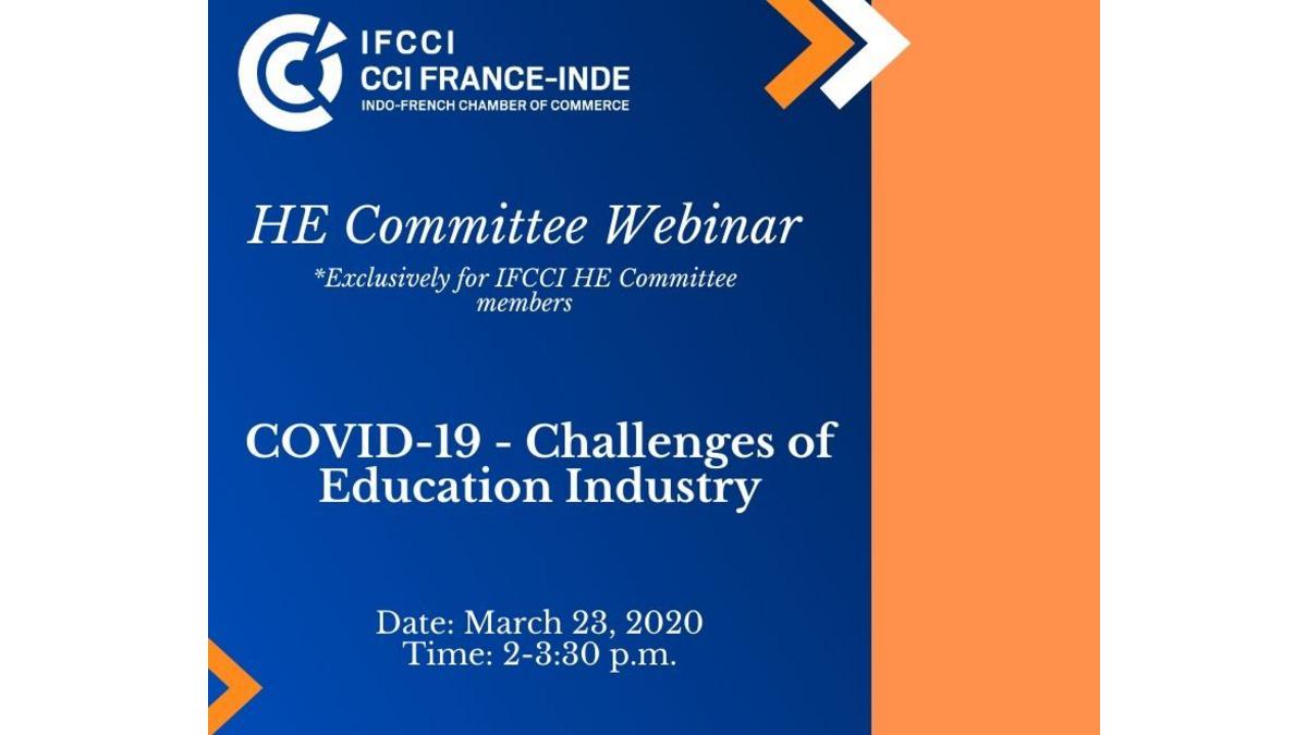 On March 23, 2020, the IFCCI Higher Education Committee organised a webinar for the members to understand the challenges faced by the Education Industry in times of Covid-19. The French and Indian schools shared their issues related to admissions, cancellation / postponement of exams, drop in summer internship opportunities, student mobility etc which have been impacted adversely. A few schools shared how they are dealing with the situation by introducing E-classes , online submission of assignments etc. They also discussed how to engage more with the parents of Indian students studying in France