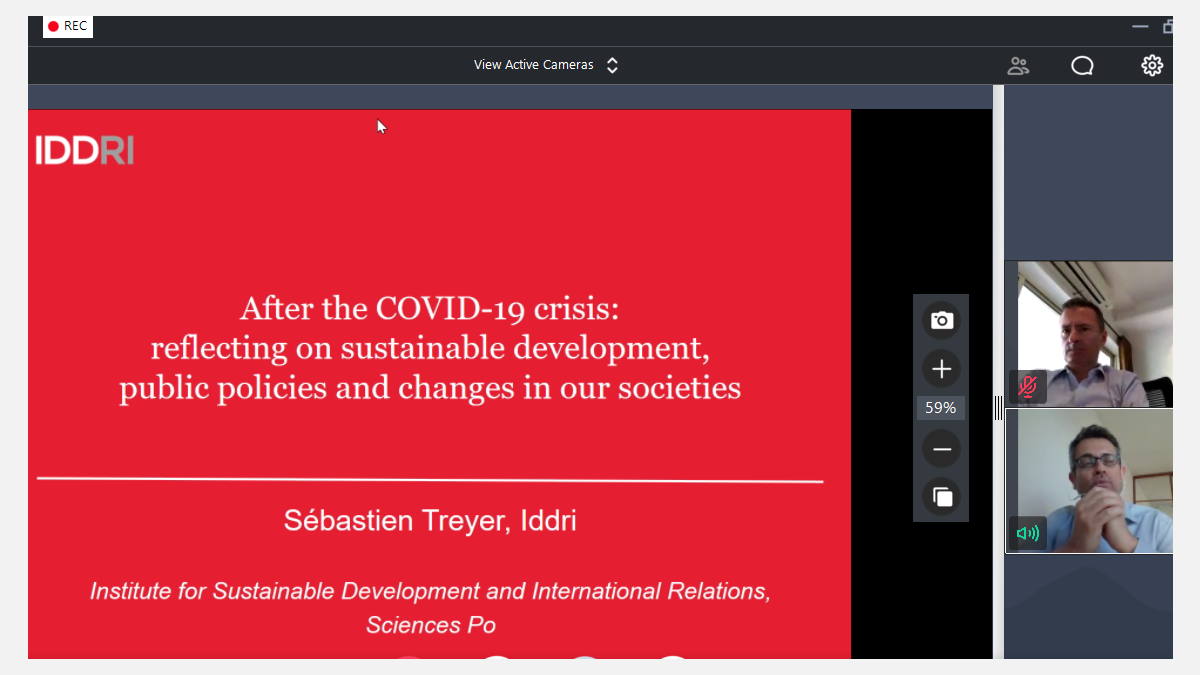 Addressing in his keynote speech Dr. Sebastien Treyer, Executive Director of IDDRI-Sciences Po and a renowned Professor, briefed participants about the current situation amidst COVID-19 in Paris and its impact globally. He shared an overview on how to prepare after the lockdown on public policies and international negotiations on sustainable development.