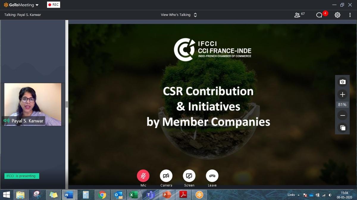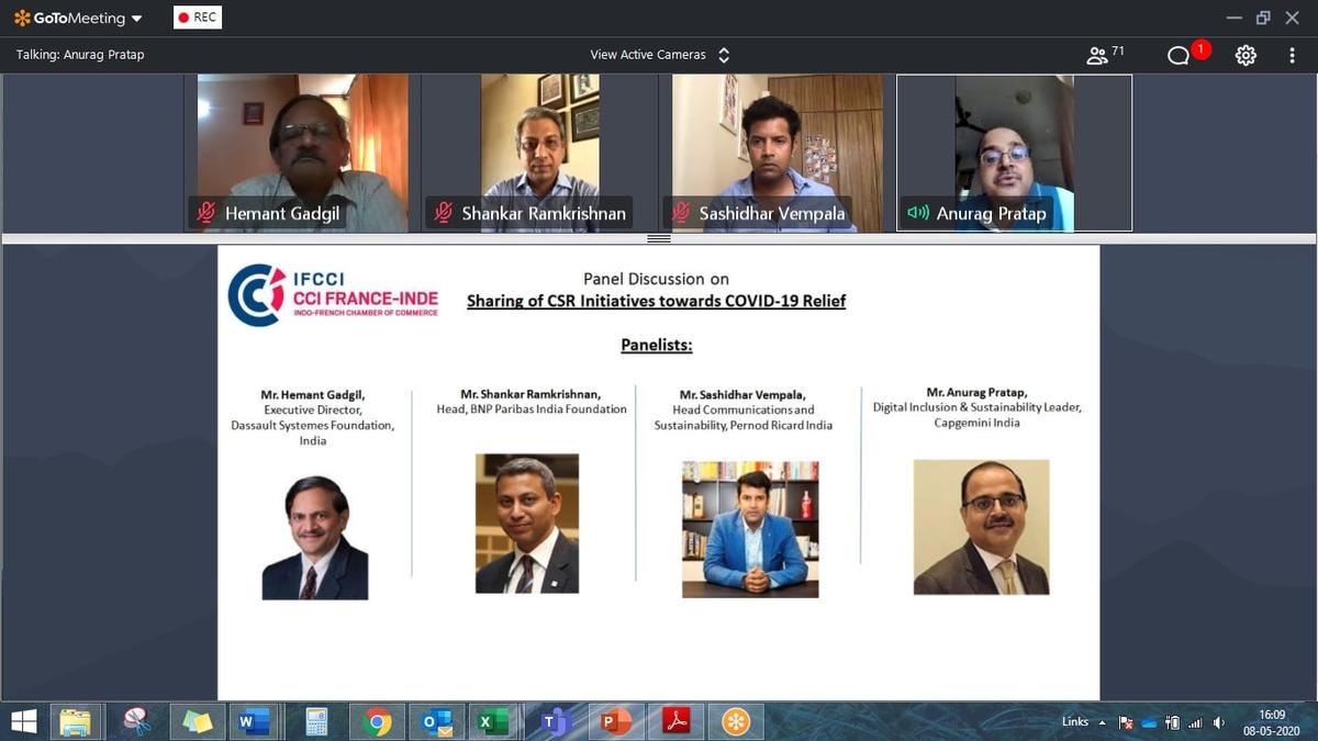The Indo French Chamber of Commerce & Industry (IFCCI) under the aegis of the IFCCI CSR Committee organised a PAN-India webinar on CSR Activities Amidst COVID-19 Crisis: An Opportunity To Create Positive Impact on Friday, the 8th May 2020.