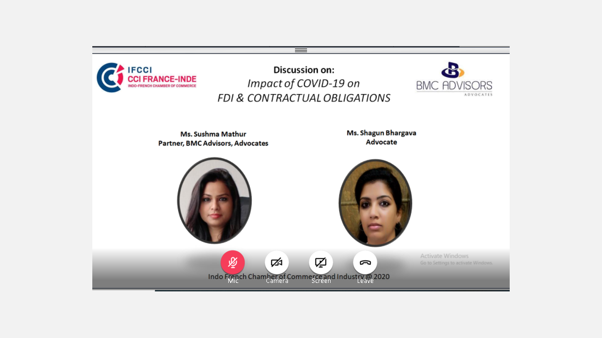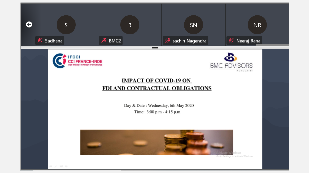 IFCCI, in association with BMC Advisors, Advocates, organized a Webinar on Impact of Covid-19 on FDI and Contractual Obligations on Wednesday, 6th May 2020.