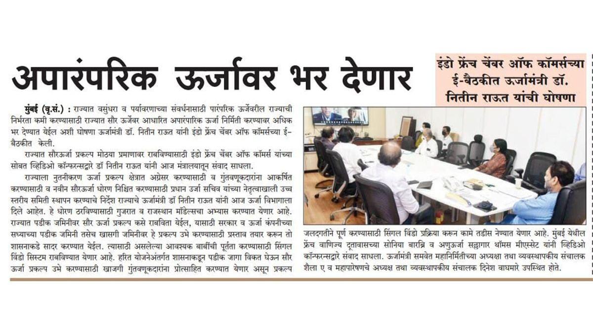 Earlier, Raut had asked Mahagenco to implement mega solar power projects in the state to reduce its dependency on conventional energy.