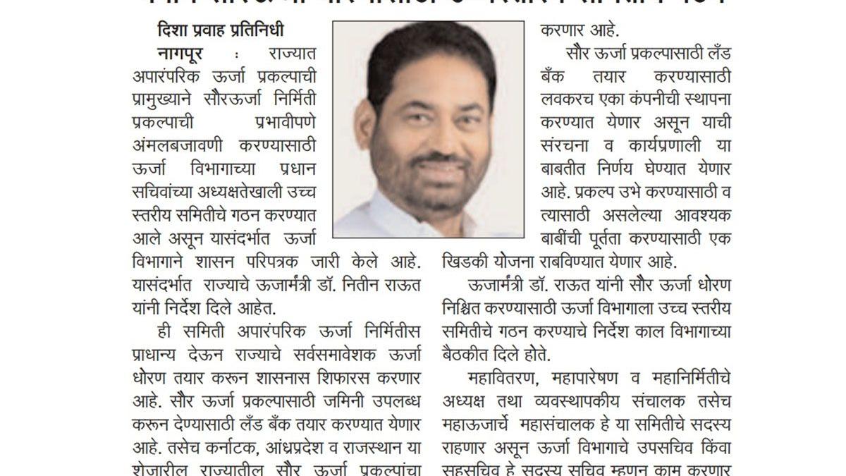 Raut said the state government plans to implement solar power projects to reduce the dependency on thermal power.