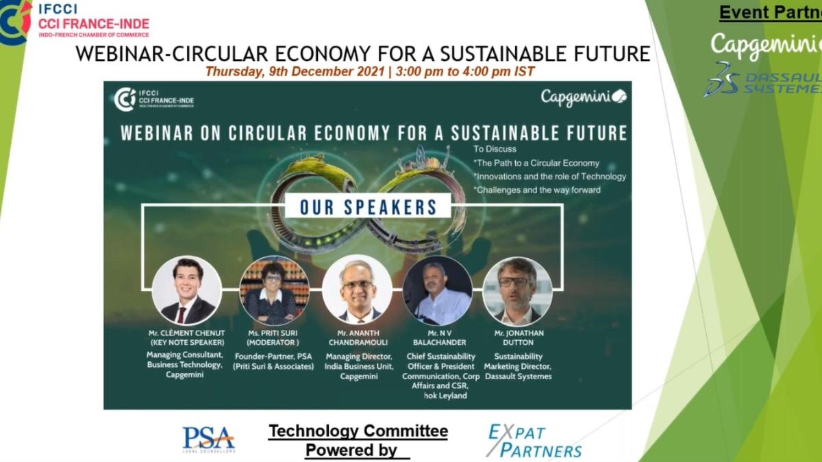 The Indo-French Chamber of Commerce & Industry (IFCCI) under the aegis of the IFCCI Technology Committee and in partnership with Capgemini and Dassault Systemes, conducted a webinar on "Circular Economy for a Sustainable Future” on Thursday, 9th December 2021.