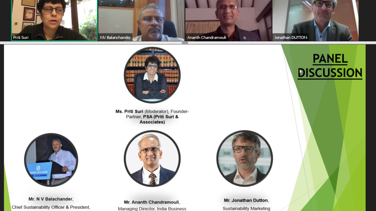 This presentation was followed by an interactive Panel Discussion moderated by Ms. Priti Suri Founder-Partner, PSA (Priti Suri & Associates) along with prominent industry leaders including Mr. Ananth Chandramouli, Managing Director, India Business Unit, Capgemini, Mr. N V Balachander, Chief Sustainability Officer & President
