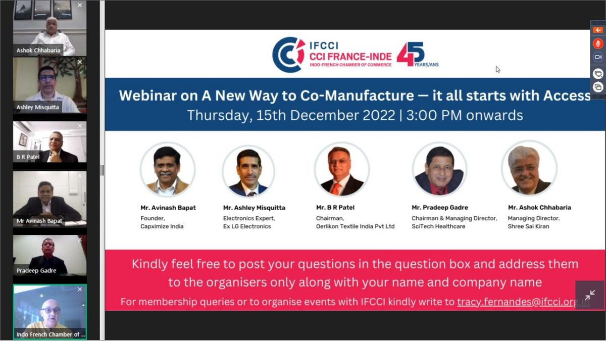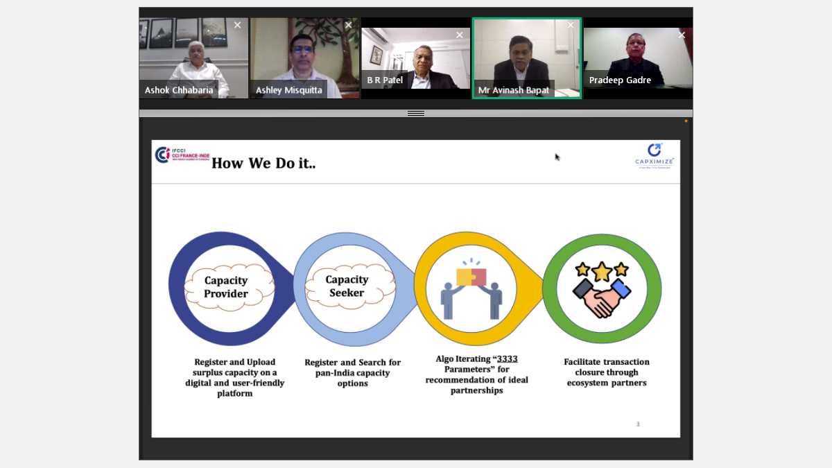 Mr. Bruno Bronquard, Regional Director, IFCCI welcomed the participants and Speakers for the Session. Mr. Avinash Bapat, Founder, Capximize India, set the context for the webinar’s initiative for its members on sharing knowledge on the new way of co-manufacturing and access.